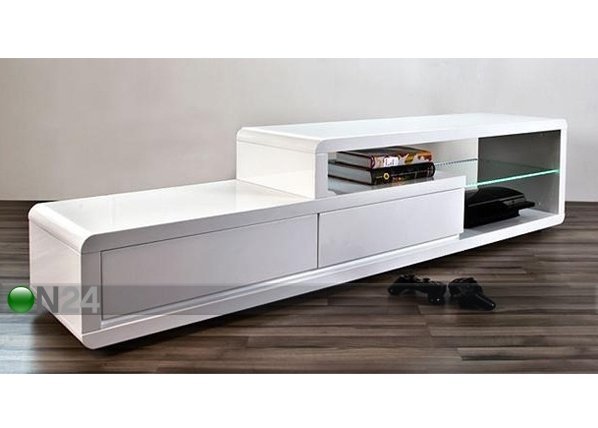 Tv-taso on valmistettu melamiinipinnoitetusta kalustelevystä – yksi hylly on karkaistua lasia – metallikiskoilla… Lue lisää »