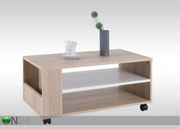 Pyörillä varustettu sohvapöytä on valmistettu laadukkaasta kalustelevystä – väri: sonoma tammi, valkoinen välitaso… Lue lisää »