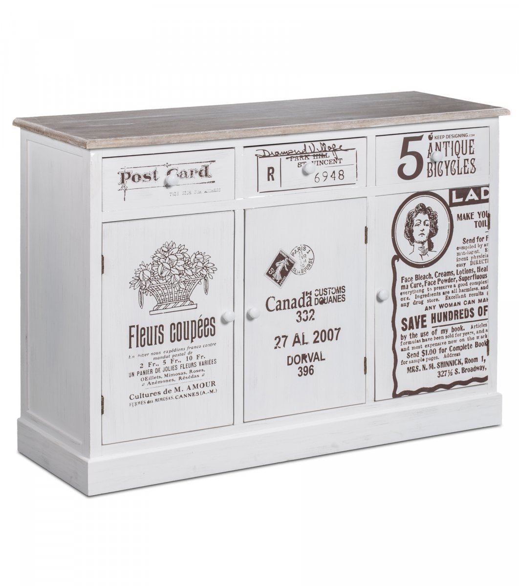 Sarah-senkki henkii ranskalaista maalaisromantiikkaa. Senkissä on 3 vetolaatikkoa puukiskoilla sekä 3 kaappia. Lohikäärmepuuta ja MDF-levyä. Tilaa nyt!