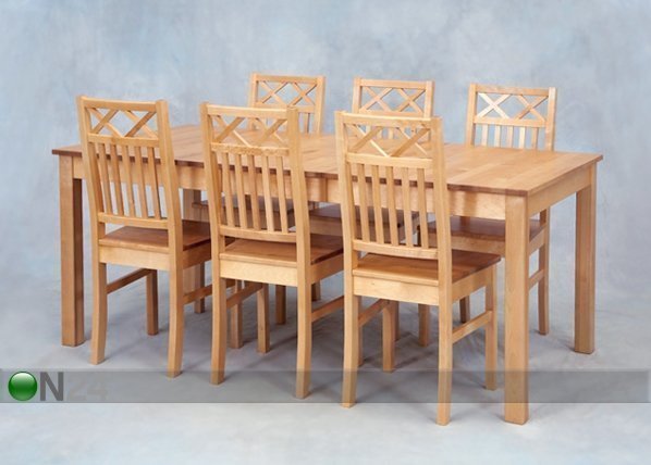 Ruokailuryhmä koostuu pöydästä ja kuudesta tuolista – pöytä ja tuolit on valmistettu koivusta… Lue lisää »