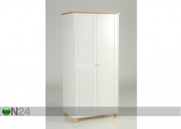 Kaksiovinen vaatekaappi on valmistettu männystä – viimeistelty valkoisella petsillä, jalat ja kansi antiikkipetsillä… Lue lisää »