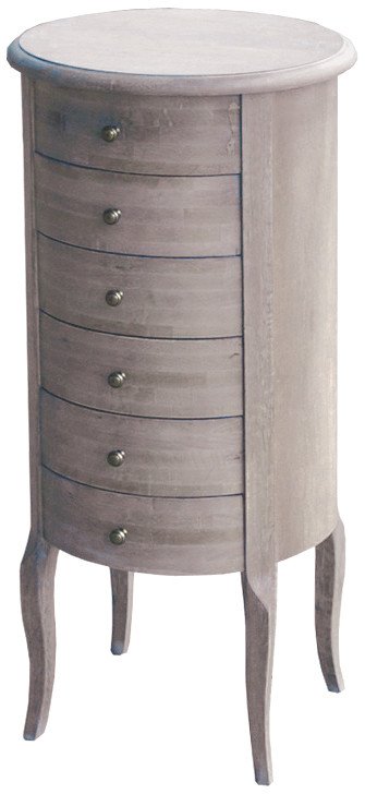 Sevilla-26 pyöreä laatikosto kuudella laatikolla. Materiaali antiikin vaaleaksi käsitelty koivu. Mitat: leveys 40 x syvyys 40 x korkeus 86 cm, paino 9 kg. Toimitetaan koottuna yhdessä paketissa.