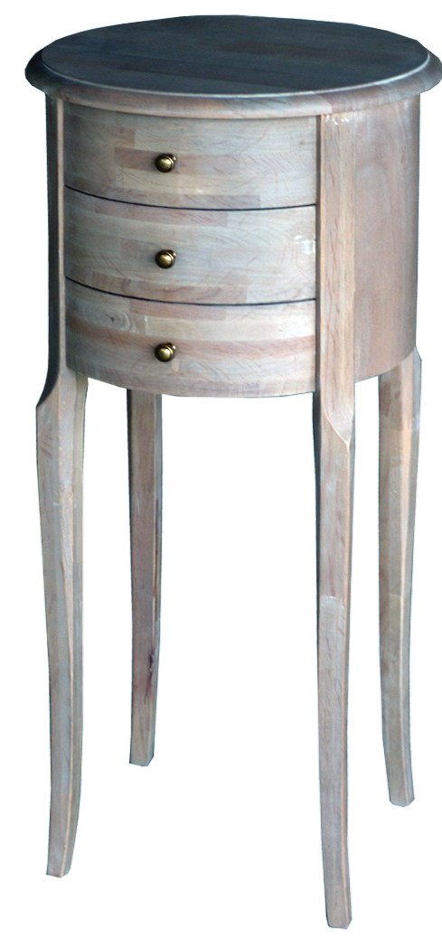 Sevilla-37 pyöreä laatikosto kolmella laatikolla. Materiaali antiikin vaaleaksi käsitelty koivu. Mitat: leveys 40 x syvyys 40 x korkeus 86 cm, paino 6 kg, toimitetaan koottuna yhdessä paketissa.