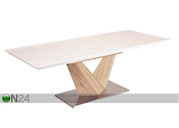 Tyylikäs jatkettava ruokapöytä on valmistettu MDF-levystä – runko on valmistettu MDF-levystä ja teräksestä… Lue lisää »