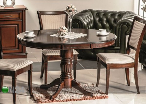 Jatkettavan ruokapöydän kansi on valmistettu viilutetusta MDF-levystä – puurunko – jatko-osa sisältyy toimitukseen… Lue lisää »