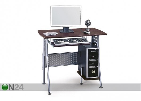 Tietokonepöytä on valmistettu tummanruskeasta MDF-levystä – runko on valmistettu alumiinin sävyisestä metallista -… Lue lisää »
