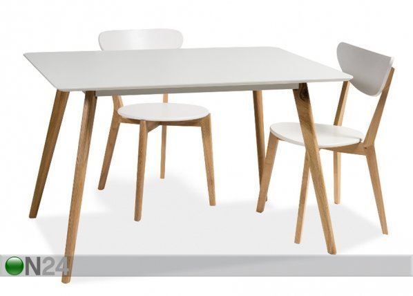 Pohjoismaiseen sisustukseen sopiva ruokapöytä – pöydän kansi on valmistettu valkoisesta MDF-levystä – runko… Lue lisää »