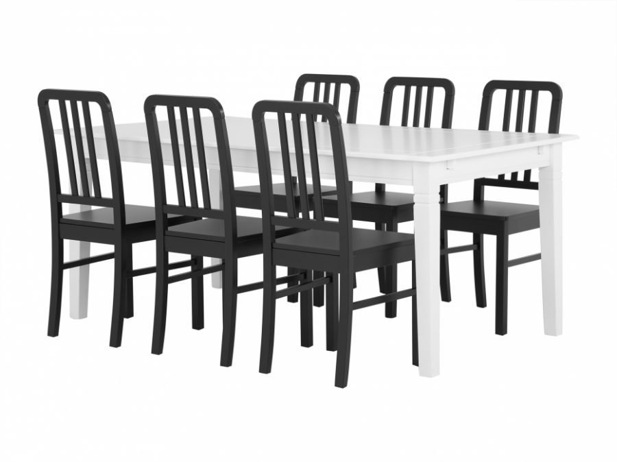 Sjövik Pöytä 180 Valkoinen + 6 EVElina Tuolia Musta