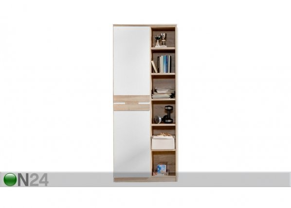 Yksiovinen kaappi on valmistettu kalustelevystä – oven takana on neljä hyllyä säädettävällä korkeudella… Lue lisää »