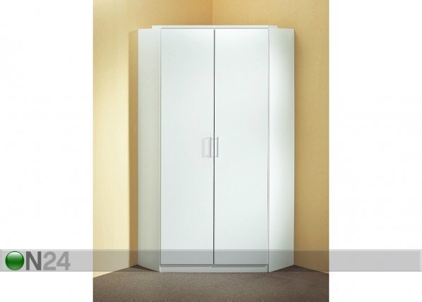 Kaksiovinen kulmavaatekaappi on valmistettu kalustelevystä – sisusta on harmaa – vasemmalla ja oikealla… Lue lisää »
