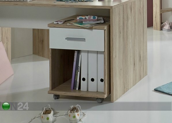 Pyörillä varustettu laatikosto on valmistettu kalustelevystä – vedin on muovia, laatikossa metallikiskot -… Lue lisää »