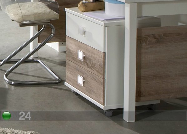 Pyörillä varustettu laatikosto on valmistettu kalustelevystä – laatikot liukuvat metallikiskoilla, vetimet muovia -… Lue lisää »