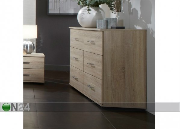 Kalustelevystä valmistetussa lipastossa on kuusi laatikkoa – laatikoissa metallikiskot, vetimet muovia – valmistettu… Lue lisää »