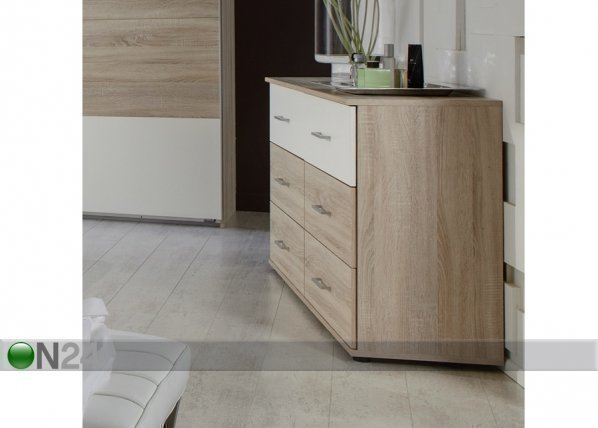 Kalustelevystä valmistetussa lipastossa on kuusi laatikkoa – laatikoissa metallikiskot, vetimet muovia – valmistettu… Lue lisää »
