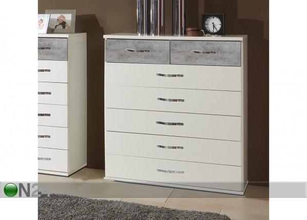 Laadukkaasta kalustelevystä valmistetussa lipastossa on seitsemän laatikkoa – laatikot liukuvat metallikiskoilla – vetimet… Lue lisää »
