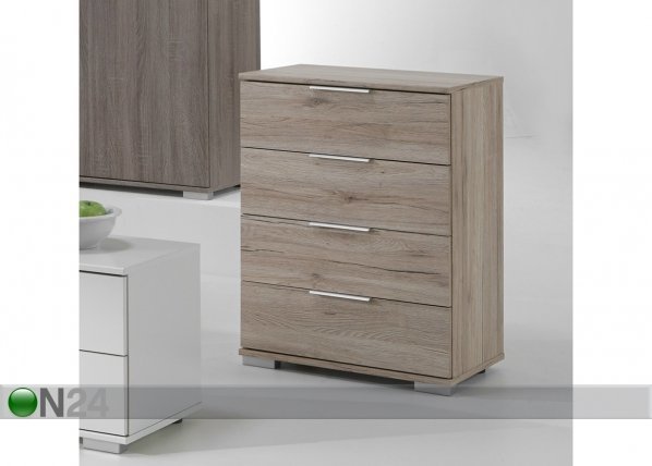 Kalustelevystä valmistetussa lipastossa on neljä laatikkoa – vetimet on kromattua metallia – laatikot… Lue lisää »