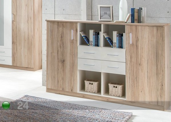 Kalustelevystä valmistetussa lipastossa on kaksi ovea ja neljä laatikkoa – molemman oven takana… Lue lisää »