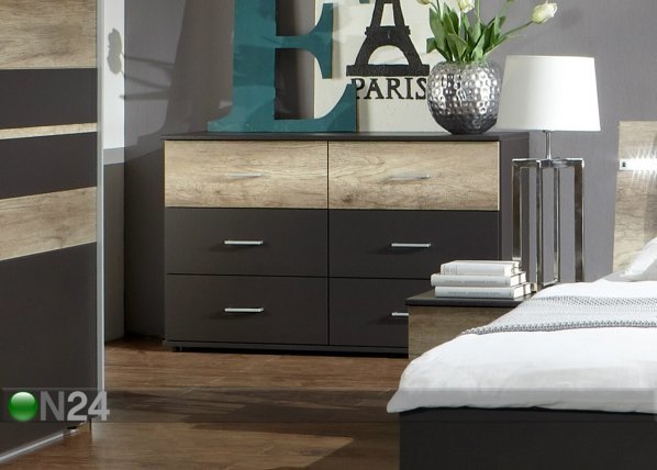 Kalustelevystä valmistetussa lipastossa on kuusi laatikkoa – laatikossa metallikiskot, vetimet muovia – tuotettu… Lue lisää »