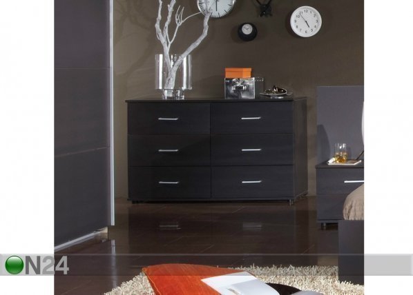 Kalustelevystä valmistetussa lipastossa on kuusi laatikkoa – laatikoissa metallikiskot, vetimet muovia – valmistettu… Lue lisää »