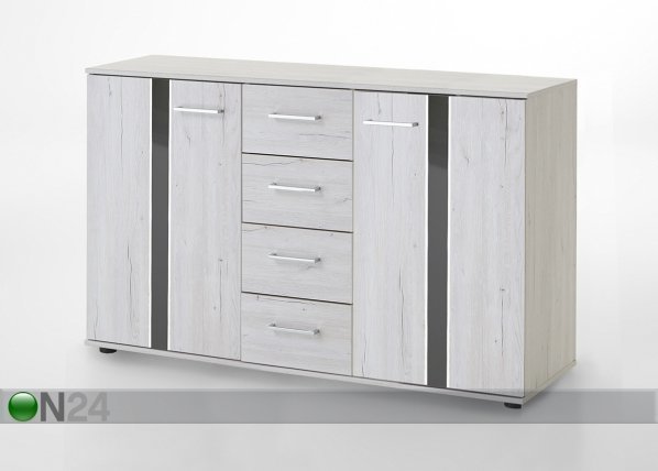 Kalustelevystä valmistetussa lipastossa on kaksi ovea ja neljä laatikkoa – molempien ovien takana… Lue lisää »