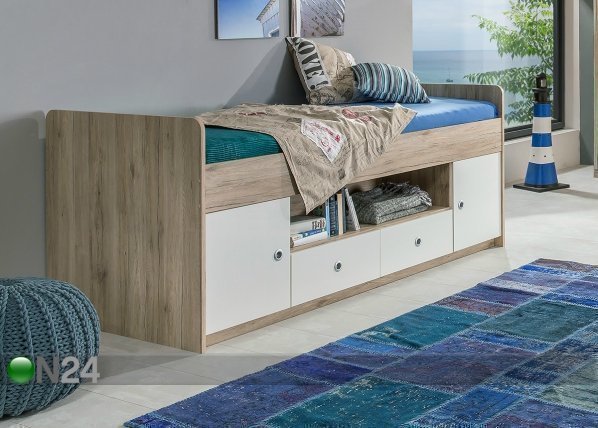 Kalustelevystä valmistetussa sängyssä on säilytystilaa – sängyn alla on avotila, kaksi ovellista säilytystilaa… Lue lisää »