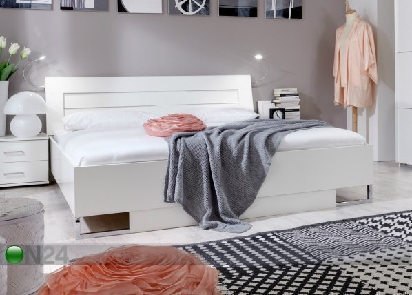 Sänky on valmistettu kalustelevystä, jalat kromattua metallia – kromatut koristelistat – valaisimet, sängyn… Lue lisää »
