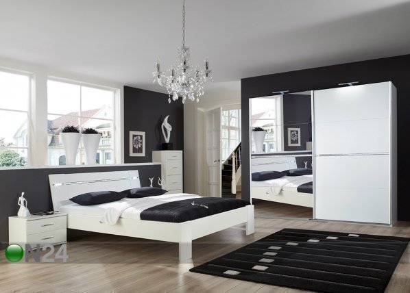 Makuuhuoneryhmä on valmistettu kalustelevystä, vaatekaapin yksi ovi on päällystetty peilillä – ryhmässä on… Lue lisää »
