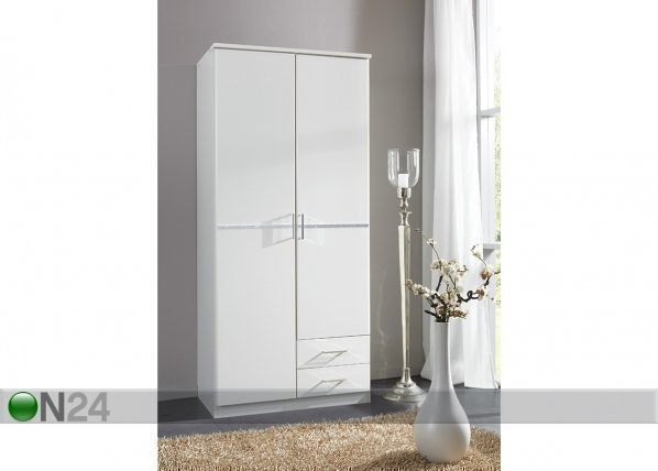 Kaksiovinen vaatekaappi on valmistettu kalustelevystä – sisusta on harmaa – vasemmanpuoleisen oven takana… Lue lisää »