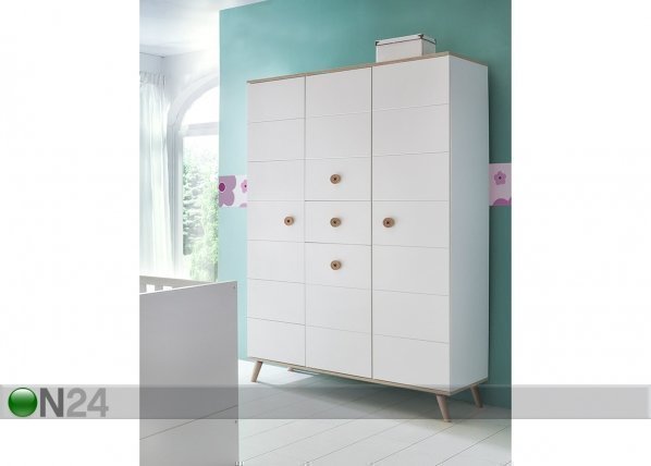 Kalustelevystä valmistetussa vaatekaapissa on neljä ovea ja yksi laatikko – ovet ja laatikon… Lue lisää »