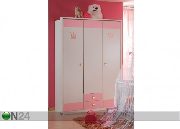 Kalustelevystä valmistetussa vaatekaapissa on kolme ovea ja kaksi laatikkoa – kaapin sisusta on… Lue lisää »