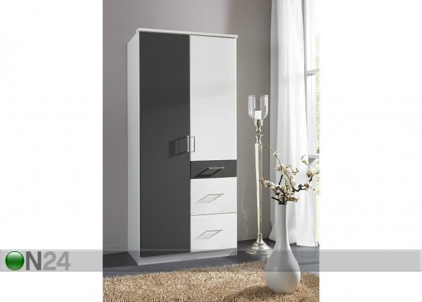 Kaksiovinen vaatekaappi on valmistettu kalustelevystä – sisusta on harmaa – vasemman puoleisen oven… Lue lisää »