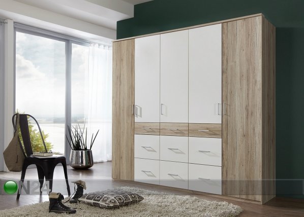 Viisiovinen vaatekaappi on valmistettu kalustelevystä – kaapin sisusta on harmaa – kaappi on… Lue lisää »
