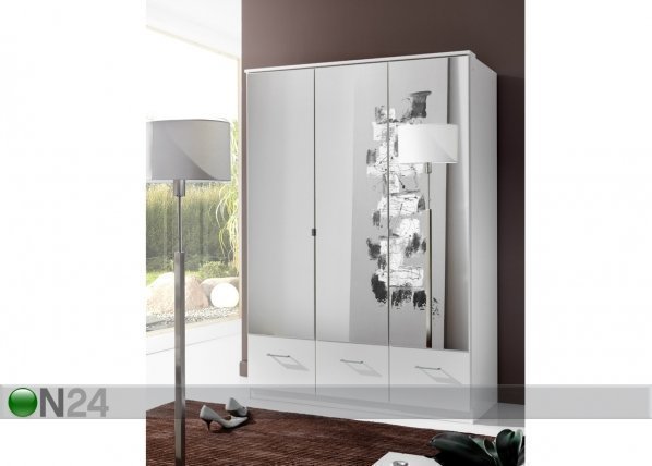 Vaatekaapissa on kolme peiliovea ja kolme laatikkoa, valmistettu kalustelevystä – kaapin sisusta on… Lue lisää »