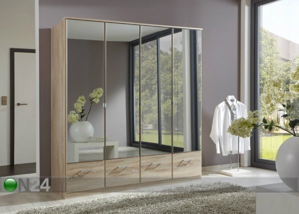Vaatekaapissa on neljä peiliovea ja neljä laatikkoa, valmistettu kalustelevystä – kaapin sisusta on… Lue lisää »