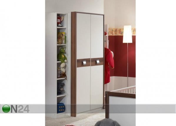 Vaatekaappi on valmistettu kalustelevystä – kaapin sisusta on harmaa – kaappi on jaettu… Lue lisää »