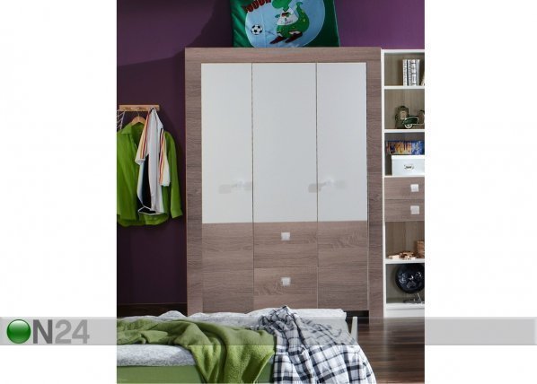 Kolmiovinen vaatekaappi on valmistettu kalustelevystä – kaapin sisusta on harmaa – vasemmanpuoleisten ovien… Lue lisää »