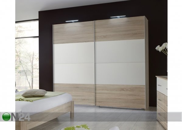 Liukuovinen vaatekaappi on valmistettu kalustelevystä – kaapin sisusta on harmaa – kaappi on… Lue lisää »