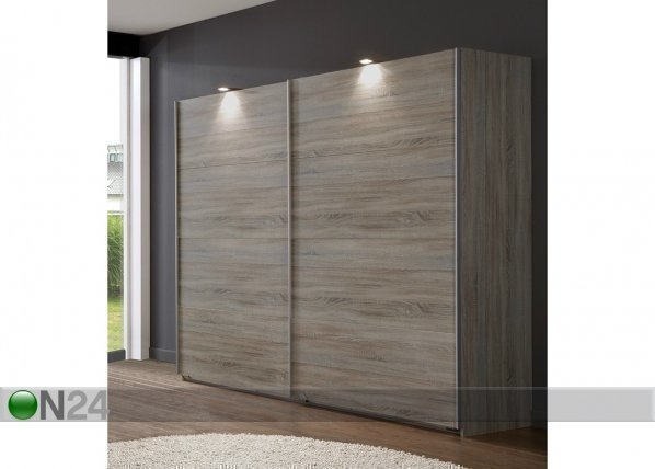 Liukuovinen vaatekaappi on valmistettu kalustelevystä – kaapin sisusta on harmaa – kaappi on… Lue lisää »