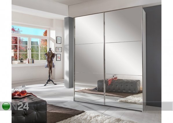 Liukuovinen vaatekaappi on valmistettu kalustelevystä – kaapin sisusta on harmaa – ovet ovat… Lue lisää »