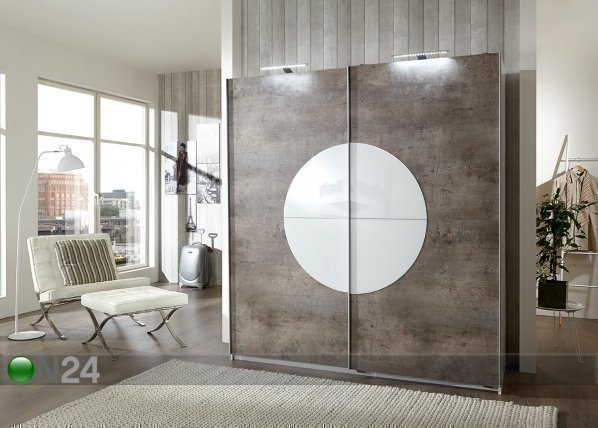 Liukuovinen vaatekaappi on valmistettu kalustelevystä – ovien keskellä on lasiset yksityiskohdat – kaapin… Lue lisää »