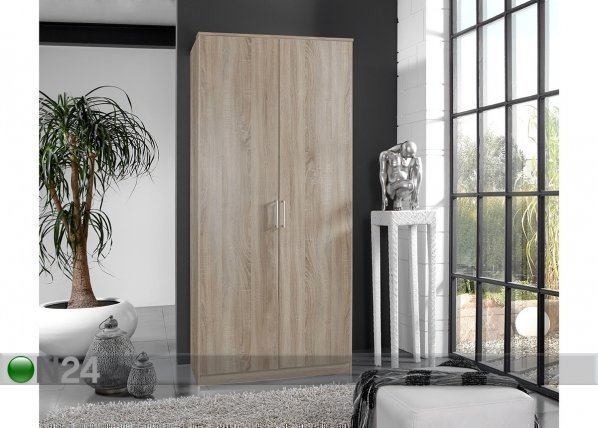 Kaksiovinen vaatekaappi on valmistettu laadukkaasta kalustelevystä – kaapin sisusta on harmaa – kaapissa… Lue lisää »