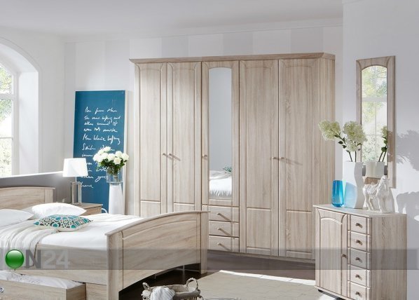 Viisiovinen vaatekaappi on valmistettu laadukkaasta kalustelevystä, keskimmäisessä ovessa on peili – kaapin sisusta… Lue lisää »