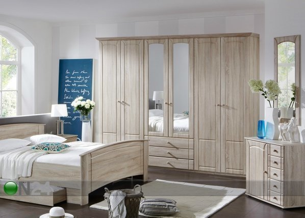 Kuusiovinen vaatekaappi on valmistettu kalustelevystä, keskimmäisissä ovissa on peili – kaapin sisusta on… Lue lisää »