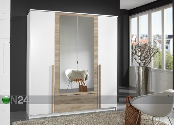Neljäovinen vaatekaappi on valmistettu kalustelevystä – kaapin sisusta on harmaa – kaappi on… Lue lisää »