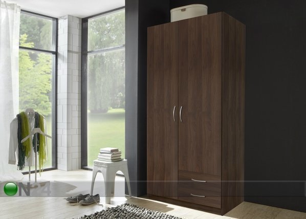 Kaksiovinen vaatekaappi on valmistettu kalustelevystä – kaapin sisusta on harmaa – kaapissa on… Lue lisää »