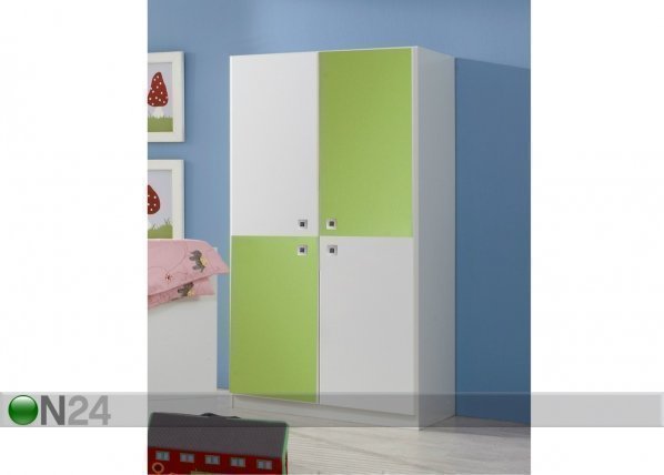 Neljäovinen vaatekaappi on valmistettu valkoisesta kalustelevystä, kaksi värillistä ovea – sekä vasemmalla että… Lue lisää »