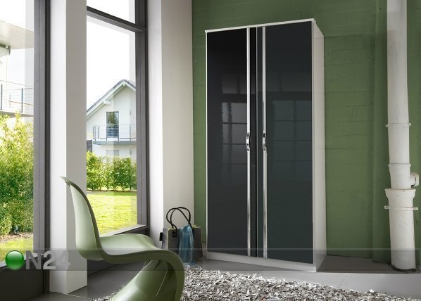 Kaksiovinen vaatekaappi on valmistettu kalustelevystä, ovissa on korkeakiilto – kaapin sisusta on harmaa… Lue lisää »