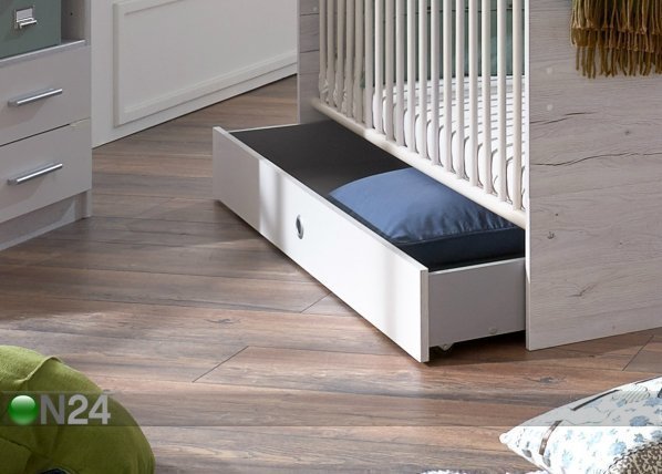 Pyörillä varustettu vuodevaatelaatikko Bornholm-pinnasänkyyn – valmistettu kalustelevystä – vuodevaatelaatikon yksi laita on tammi… Lue lisää »