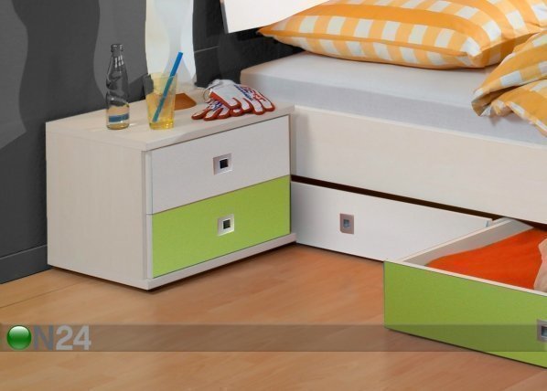 Yöpöydässä kaksi laatikkoa, valmistettu kalustelevystä – vetimet muovia, metallikiskot – tuotettu Saksassa… Lue lisää »