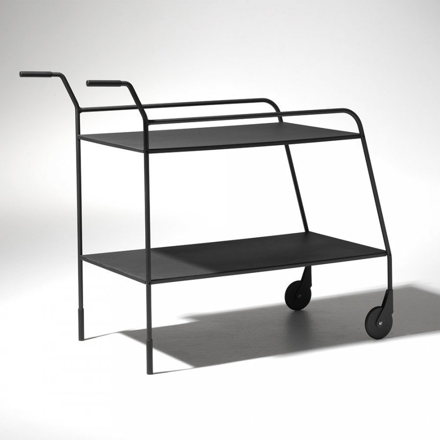 Tarjoiluvaunu on valmistettu lakeeratusta pellistä. Käytännöllinen vaunu jota voidaan käyttää sivupöytänä ja tarjoiluun.